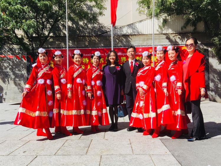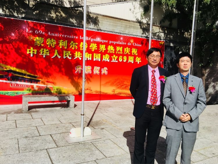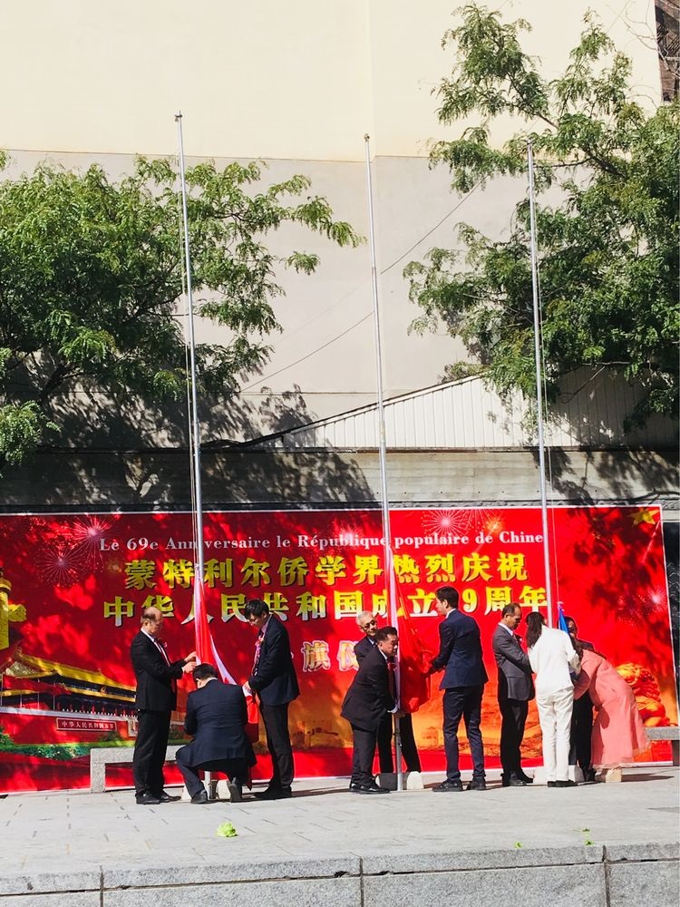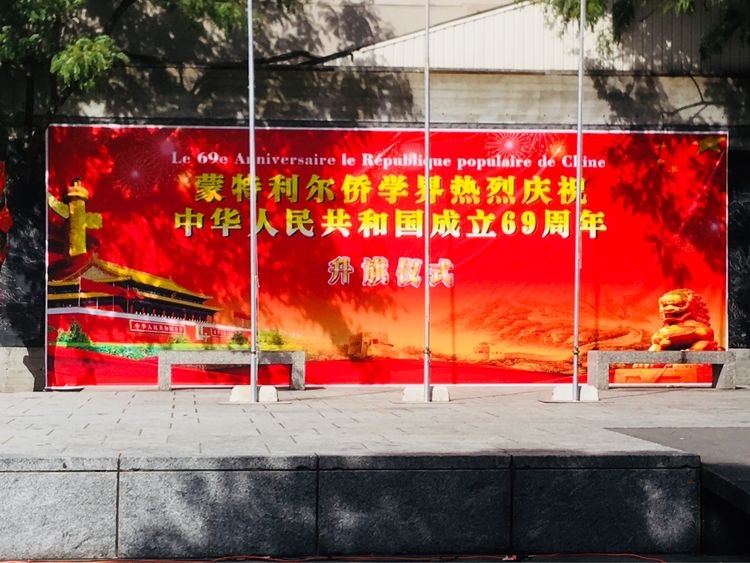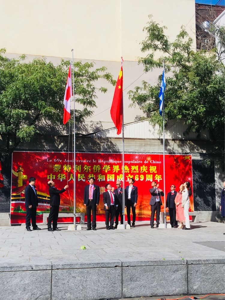 九月二十八日,风和日丽,阳光明媚,蒙特利尔唐人街中山公园,张灯结彩,人来人往,男女老少,肤色各异,人们奔走相告,蒙特利尔侨学界正组织庆祝中华人民共和国成立六十九周年,并举行升旗仪式。