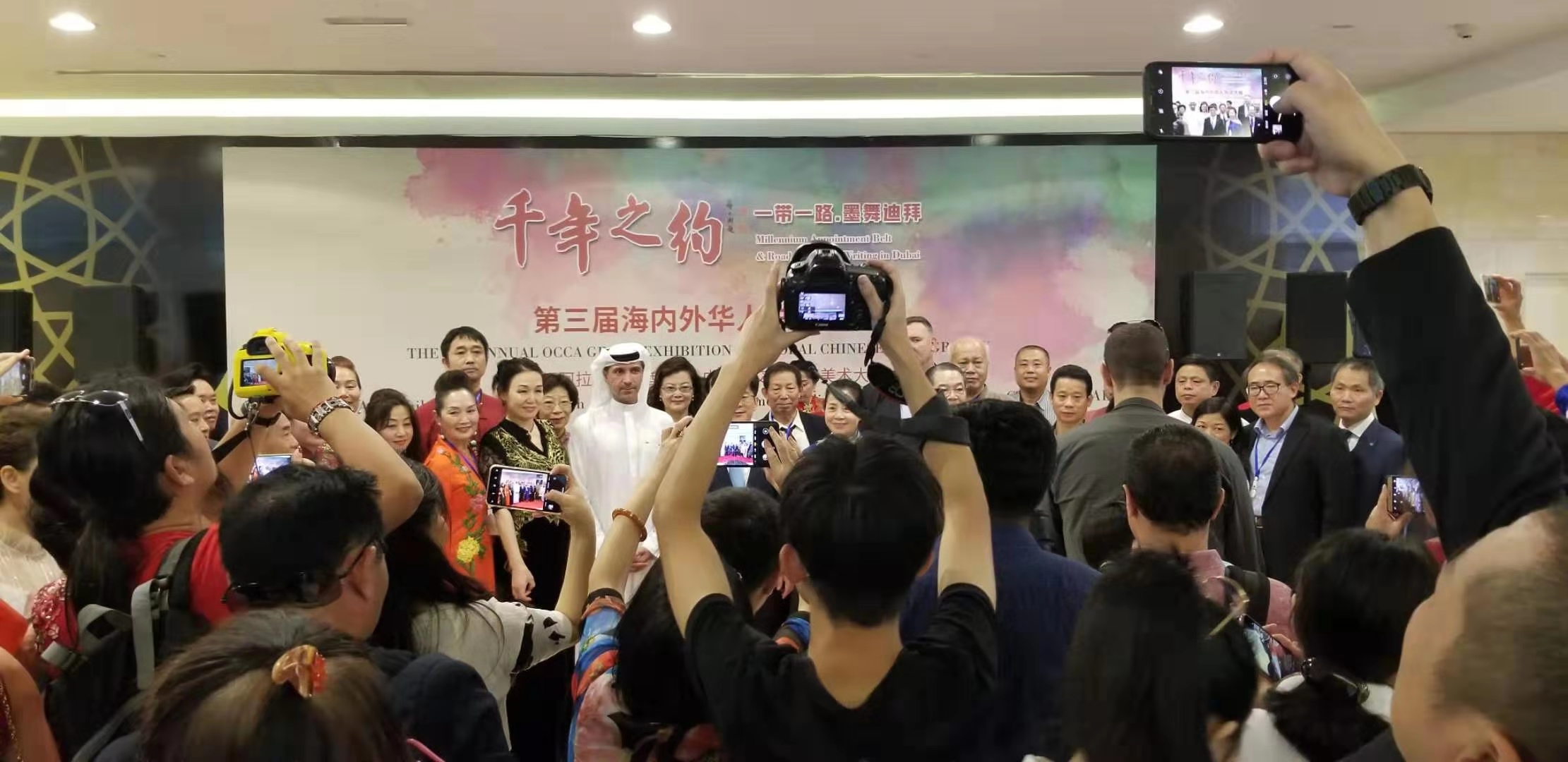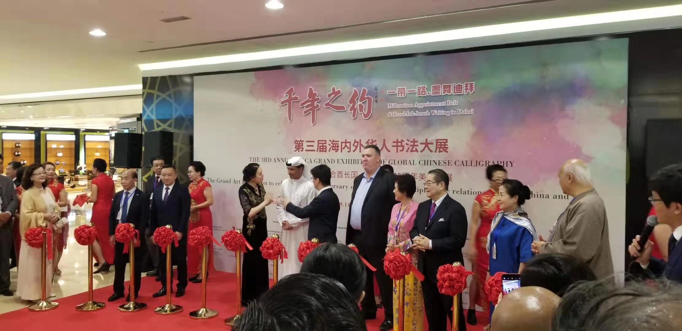 2019年11月18日-23日“一带一路,墨舞迪拜”《千年之约》大型书画展在迪拜国际金融中心 DIFC Gate Avenue 举办。 2019是祖国70周年大庆,也是中阿建交35周年,本次公益活动无疑在一带一路的重要节点城市迪拜掀起新一轮中华文化旋风。魁北克格瑞斯多元文化协会,名誉主席:谭超鸿先生受协会之托带队参加了这一盛会。
